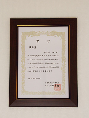 • 近畿矯正歯科研究会(2016年) 優秀賞受賞